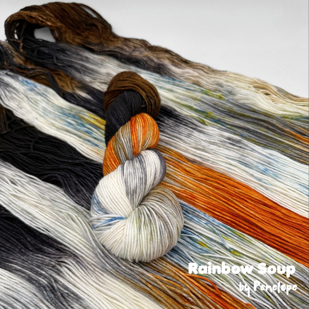 Dyed by Penelope, age 7, in our Rainbow Soup Collection... (Don't worry, the dyeing is done under professional supervision)