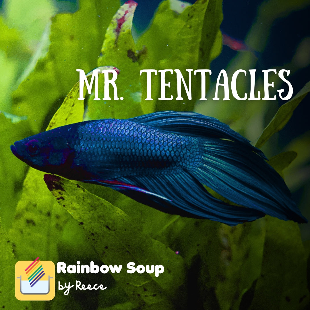 Reece modeled this colorway off is his Betta (Siamese Fighting) Fish, Mr. Tentacles. At first, we discussed how fish can look different depending on the angle in which you look at them because of their scales. This was going to be a challenge in my mind, I mean, which angle do you represent? But, he nailed it on his first try. Matching the shading of teal-blue-purple is not easy, but this colorway is a wonderful representation of his Beta's tropical-aquatic beauty.