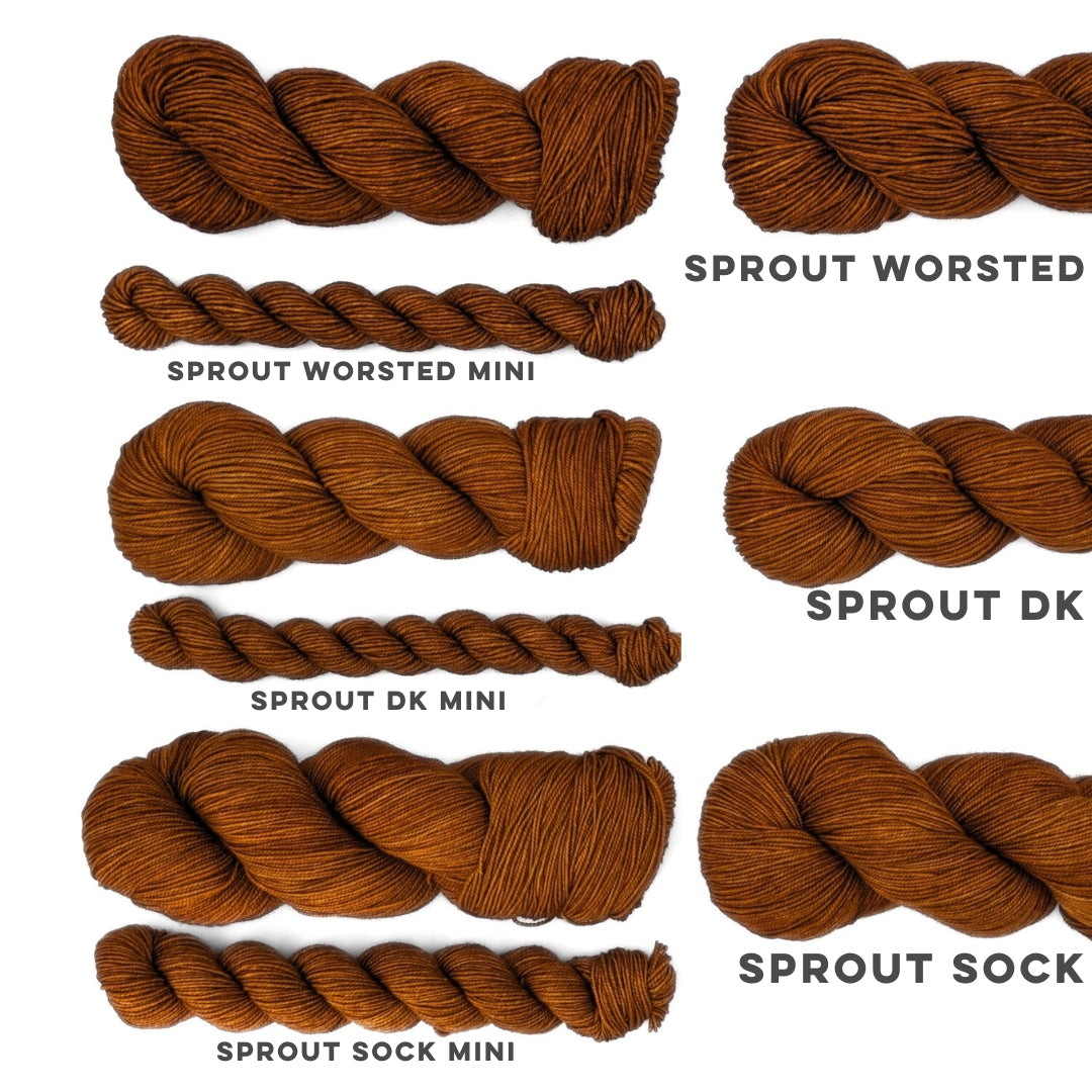 Sprout was designed by us with durability and flexibility in mind, with the unrivaled quality of an All-American made yarn, ready no matter where you take your project.