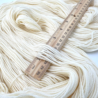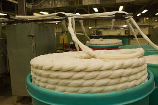 We start with Domestic (USA) grown wool, from the wool pool, with a particular micron count that gives the yarn a soft handle, yet able to with stand common uses.