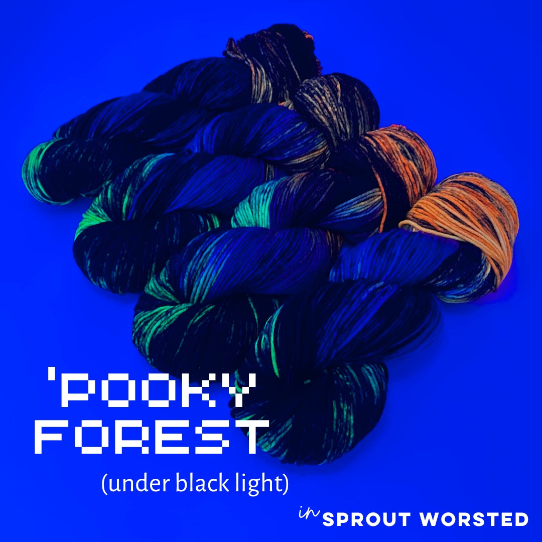A vibrant Kaleidoscope mix of neon orange, neon green, and Ultra Violet purple that glows brightly under black light. Inspired by Reece’s toddler phrase "pooky" for something a bit spooky, this playful Halloween colorway is named with a kid's imagination in mind.